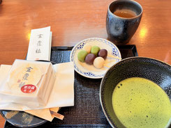 金覆輪の和菓子にお抹茶🍵
